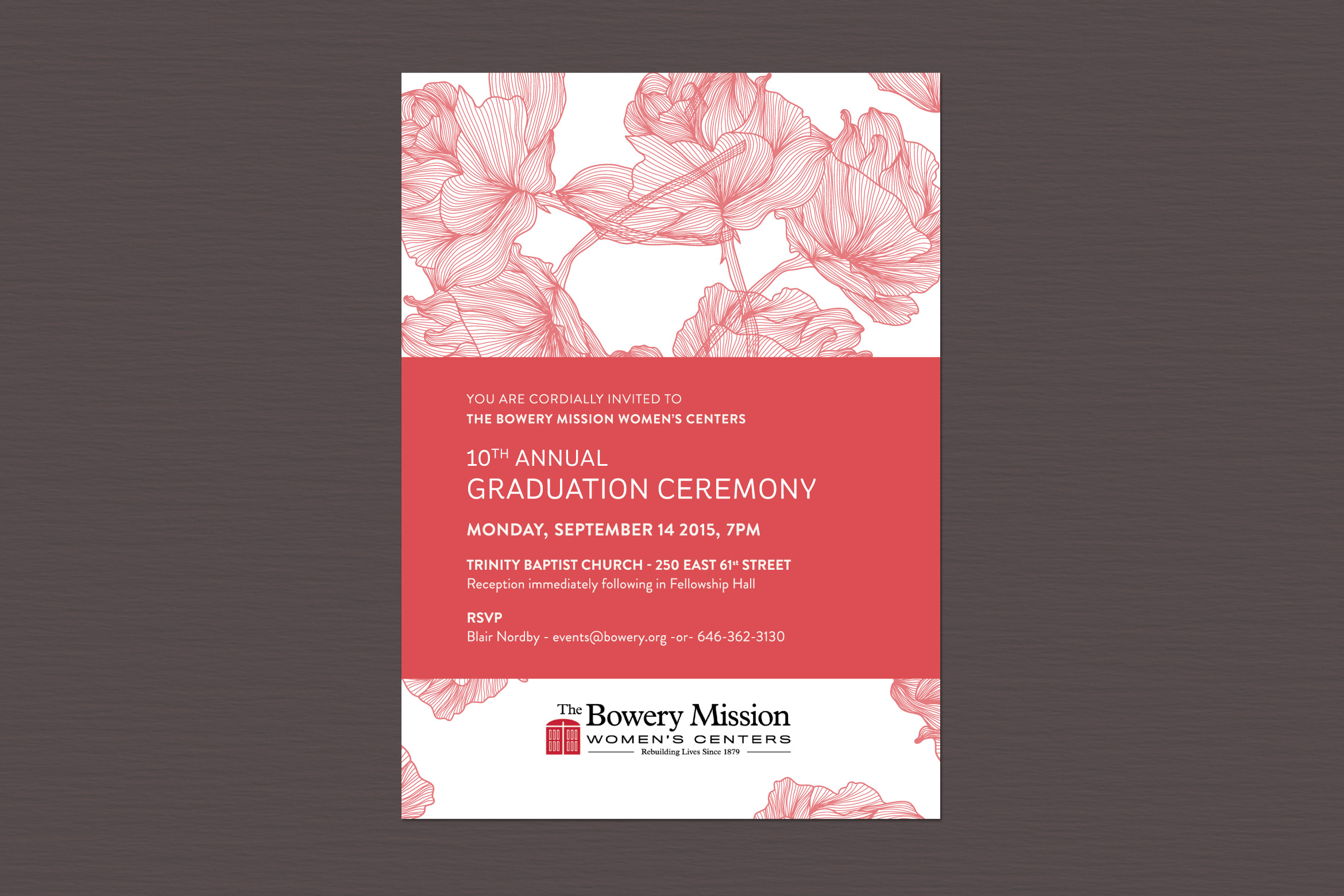 Invitation to a graduation ceremony for The Bowery Mission Women's Centers.