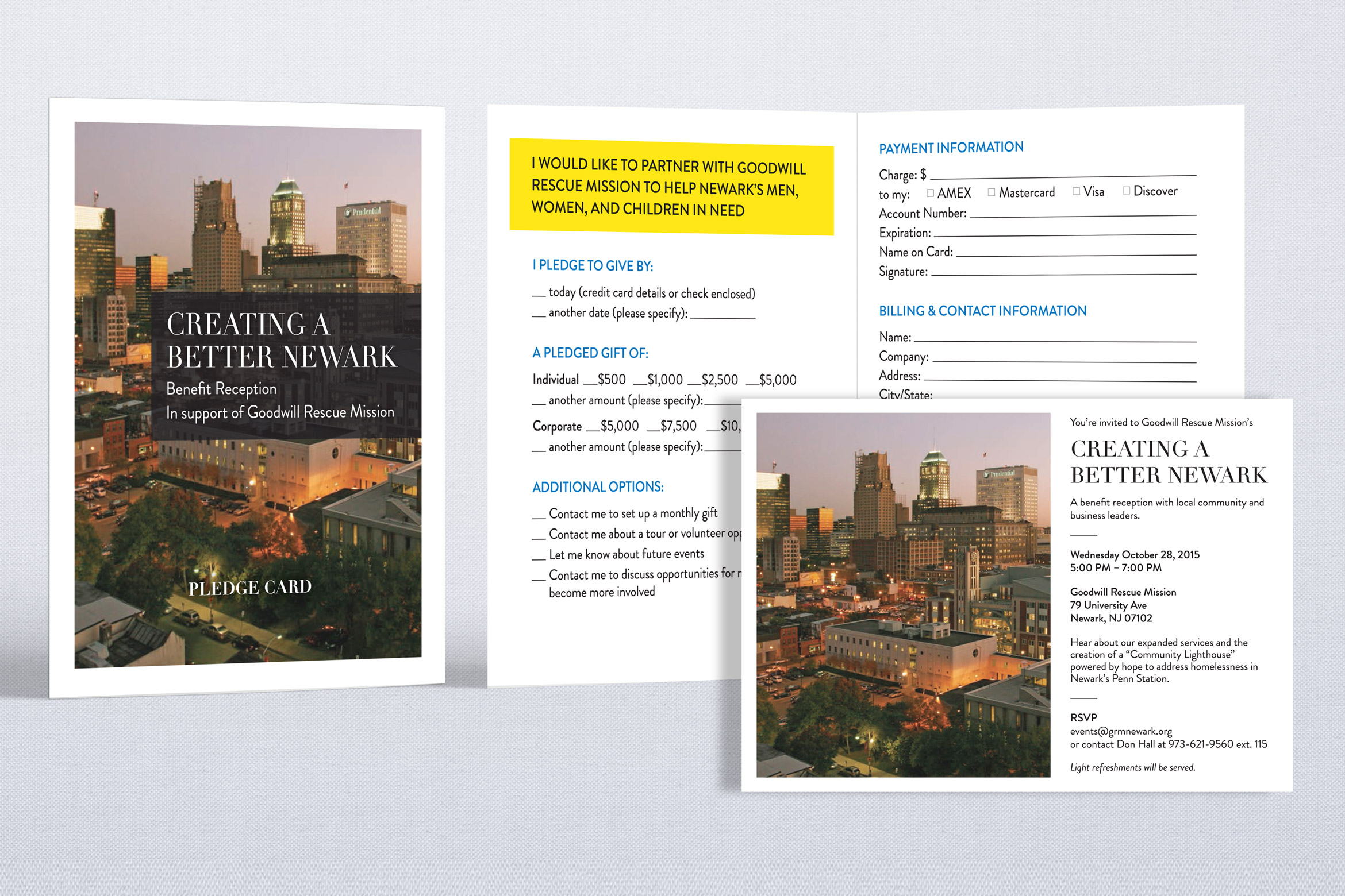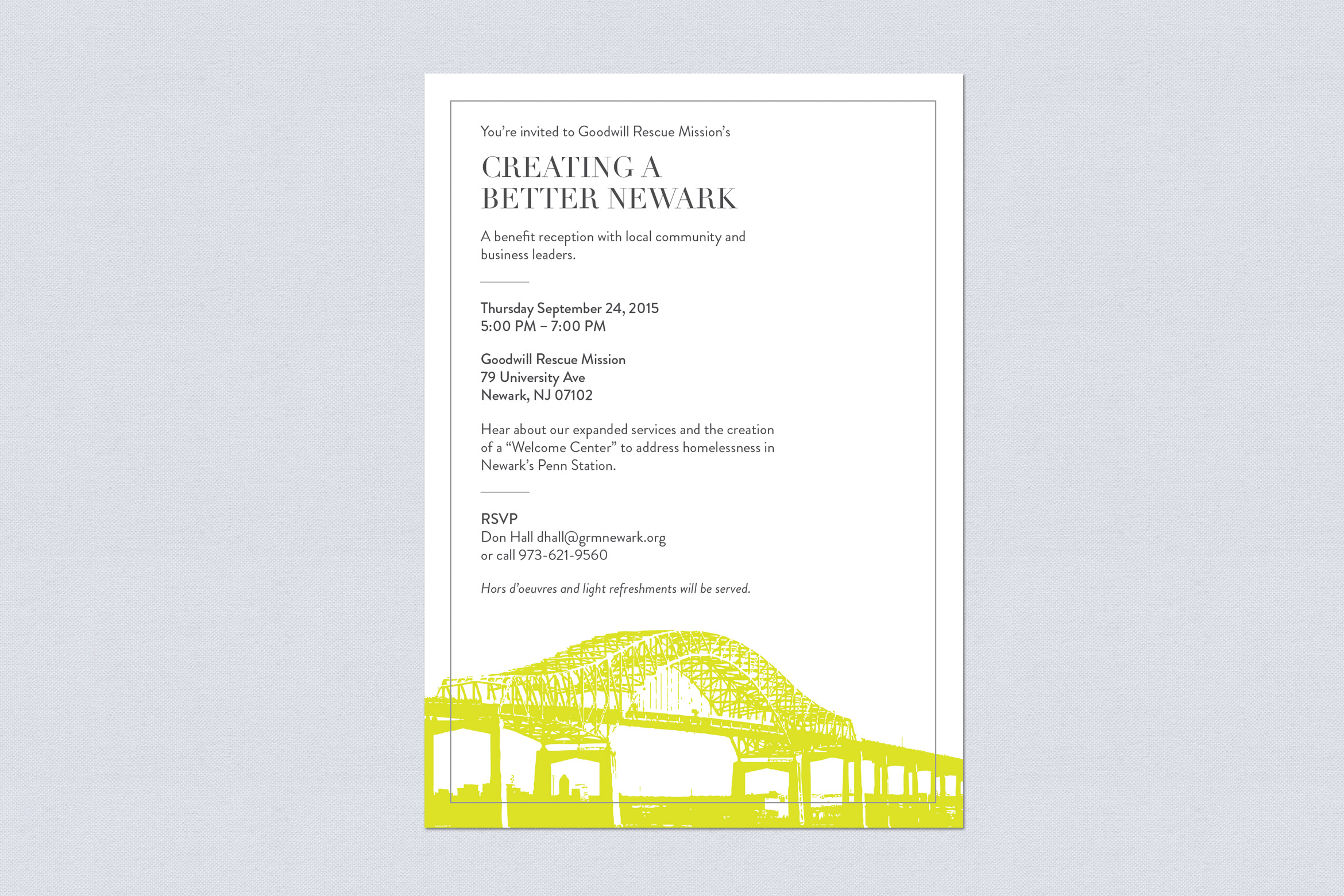 Invitations to an open house and benefit reception at Goodwill Rescue Mission's Newark campus.