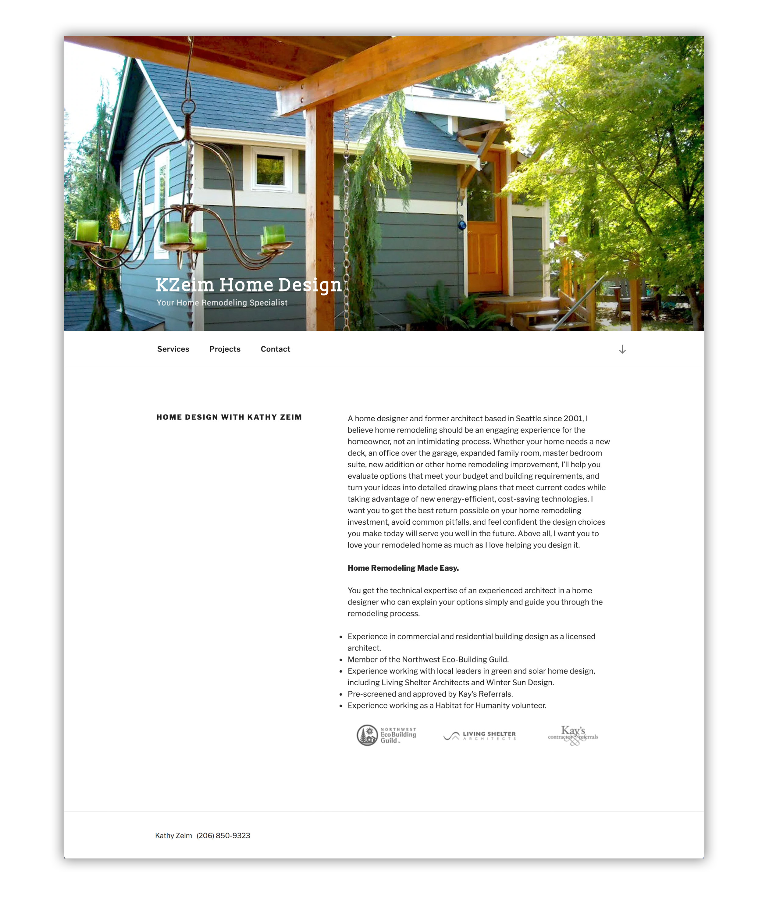 A website redesign for Kathy Zeim, a Seattle-based designer specializing in green building.