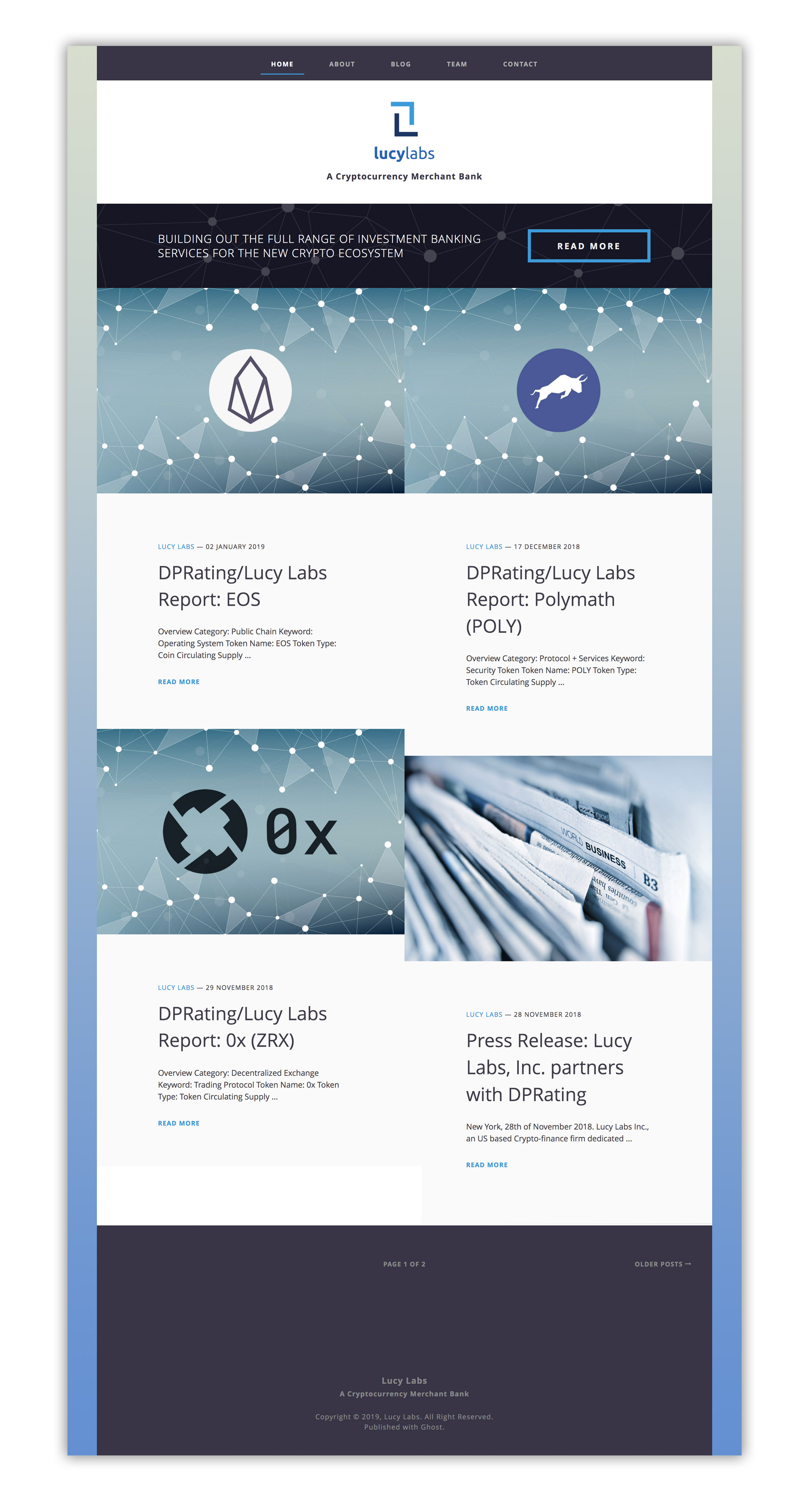 Lucy Labs is a cryptocurrency merchant bank. The website was part of a branding project which also included the design of a logo and business card.